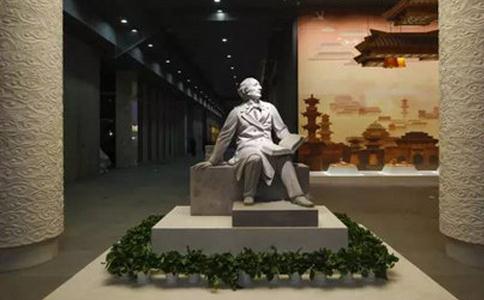 金陵刻经处,这里悬挂着呈现传统佛教刻版文化之精髓的刻经板,在顶面、壁面上是的《洪武南藏》经文。一侧陈列的是金陵佛教贡献及复兴者的艺术铜雕像。