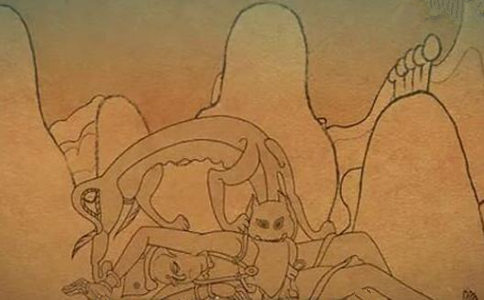 随即就见苏醒后的波罗、提婆两位王子急匆匆痛哭着奔向父母。他们向国王、王后叙述弟弟萨埵舍身饲虎的过程,话到一半,痛失爱子的国王、王后就昏死了过去。