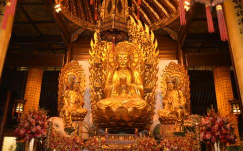 大雄宝殿佛教寺院中供奉佛像的正殿。“大雄”为佛的德号,为什么叫大雄呢?是因为佛具足大力,能降伏四魔,四魔是指:一,烦恼魔,贪等烦恼,能恼害身心,故名魔。二,阴魔,又云五众魔,新译云蕴魔,色等五阴,能生种种之苦恼,故名魔。三,死魔,死能断人之命根,故名魔。四,他化自在天子魔,新译云自在天魔,欲界第六天(即他化自在天)之魔王,能害人之善事,故名魔。此中第四为魔之本法,他三魔皆类从而称魔也。因此,凡是寺院中之大雄宝殿,所供奉之主尊必定是佛像,而非菩萨或护法像。具体供奉哪一尊佛,有不同的情形,兹略述如下: